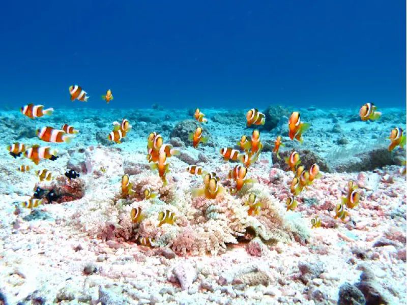 沖縄の海を満喫するなら、透き通るエメラルドブルーの海が広がる**瀬底島(せそこじま)**や**水納島(みんなじま)**での体験ダイビングがおすすめ!「初めてで不安」「泳ぎが得意じゃない」という方でも大丈夫。経験豊富なインストラクターがしっかりサポートしながら、海の中の感動体験へとご案内します。